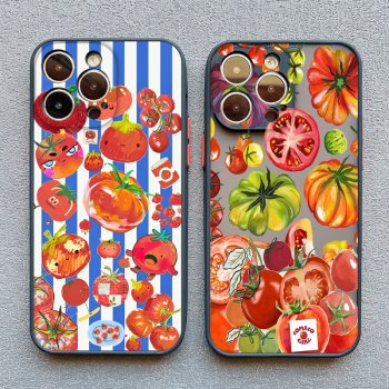 Red Tomato & Blue Stripe Cartoon Phone Case for iPhone