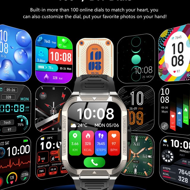 This smartwatch delivers all the essential features you rely on every day. With health monitoring sensors that track heart rate, blood oxygen, sleep, and stress, it helps you stay aware of your body wherever you go. Integrated Bluetooth 5.3 ensures fast, stable connectivity, allowing you to receive calls, answer them instantly, and get message reminders without reaching for your phone.